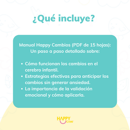 No necesitas ser experta ni invertir días en investigar. Con Happy Cambios , tienes en tus manos una guía clara y materiales listos para usar sin perder tiempo.