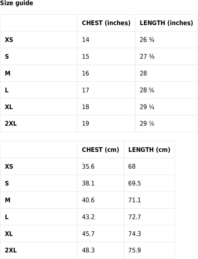 | CHEST (inches) | LENGTH (inches) | |